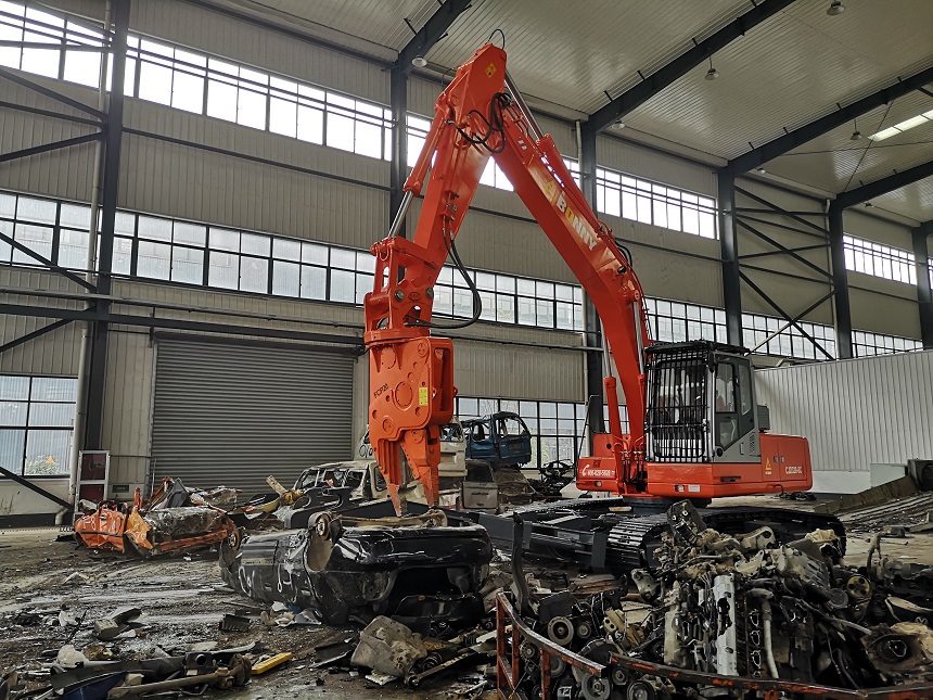 邦立重機(jī)抓鋼機(jī)、汽車報(bào)廢拆解機(jī)交付浙江某鋼鐵企業(yè)