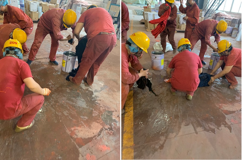 邦立重機(jī)總裝工場(chǎng)開(kāi)展?;镄孤稇?yīng)急處理演練