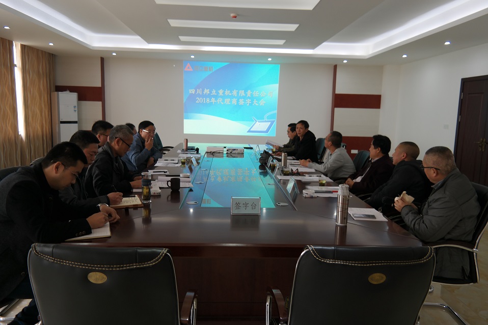 2018年3月5日,在四川邦立重機銷售公司會議室舉行了2018年全國代理商簽約儀式會議。會議由銷售公司總經(jīng)理程全勝主持,代理四川邦立挖掘機、抓料機、抓鋼機、報廢汽車拆解機等產(chǎn)品的全國各大代理商悉數(shù)到場參加。 會議中公司董事長蔡禺就目前的挖掘機,抓料機,抓鋼機、報廢汽車拆解機等產(chǎn)品市場形勢和產(chǎn)品研發(fā)向代理商作了介紹,且抓鋼機產(chǎn)品升級換代已完成,并表示在國家政策影響下未來二至三年,挖掘機、抓料機、抓鋼機、報廢汽車拆解機等產(chǎn)品市場還是大有可為。負(fù)責(zé)銷售公司的公司副總經(jīng)理丁昆就2018年代理協(xié)議的變動向代理商作了說明,并對代理商工作提出了新的要求,及保持對代理商一如既往的支持。會議中各大代理商代表也進(jìn)行了發(fā)言,在發(fā)..
