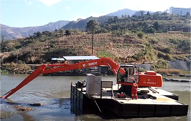 2016年我公司生產(chǎn)的長臂浮箱式電動挖掘機在某礦山尾礦庫投入使用,至此打開了我公司新型礦山設(shè)備的開發(fā)使用序幕。通過半年的現(xiàn)場使用實踐證明該型設(shè)備達到了預(yù)期的設(shè)計效果,并且該設(shè)備得到了用戶的一致好評,不僅為客戶節(jié)約了使用成本同時還提高了工作效率。2017年2月該礦山公司與我公司續(xù)簽一臺同型號的長臂浮箱式電動挖掘機機用于另一尾礦庫的生產(chǎn)使用。
