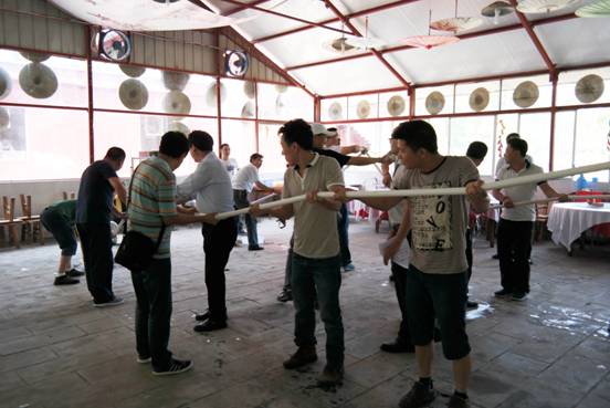 ? 一清早,大家就按安排準(zhǔn)時達(dá)到場地,活動總教練丁昆和黨支部書記張曉明及工作人員已經(jīng)提前一天布置好了場地,隨即所有員工分成了4個小組進(jìn)行競技?;顒舆^程中,各小組展開激列競爭,相繼完成了穿越電網(wǎng)、人造機(jī)車、生命之旅、無敵風(fēng)火輪、源源不斷、核 彈轉(zhuǎn)移等項目。本次活動以隊友間建立相互信任、強(qiáng)調(diào)團(tuán)隊合理分工協(xié)作,加強(qiáng)團(tuán)隊信息的有效溝通和執(zhí)行為重點(diǎn),達(dá)到錘練團(tuán)隊、提高溝通和協(xié)作的目的。當(dāng)天艷陽高照,大家在戶外汗流浹背,但各組成員齊心協(xié)力爭取好成績,大家彼此加油,現(xiàn)場氣氛執(zhí)烈。