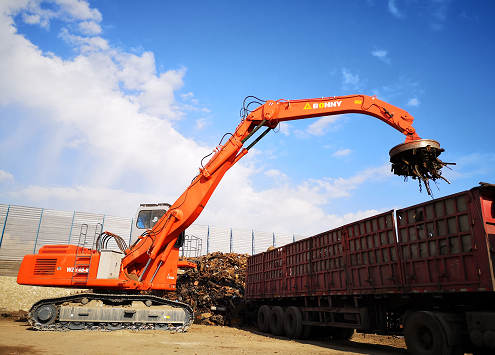 ●可以選擇配備多種工作裝置(抓斗)實現(xiàn)廢鋼、圓木、木屑、原煤、草料等多種物料的抓取、裝卸